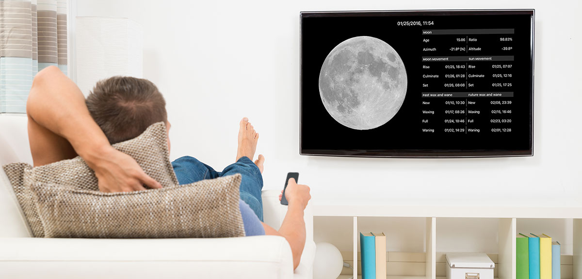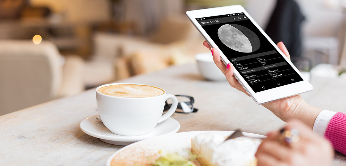 Diana graphically displays the waxing and waning of the Moon. Available for iOS (iPhone/iPad), tvOS (Apple TV), macOS (widget) and Android.